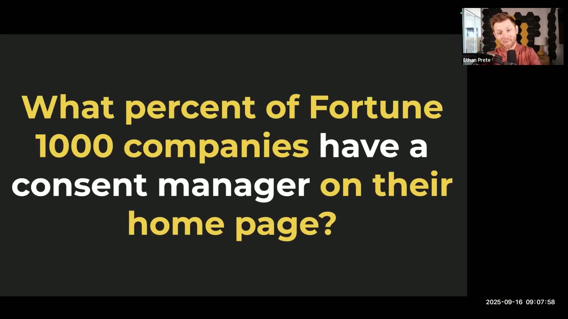 Only half of Fortune 1000 companies have a CMP — and half of those don't work.ObservePoint's audit found just 46.7% of Fortune 1000 sites had a consent manager at all, and of those, 55% still loaded advertising trackers and 71% still set third-party cookies after a visitor opted out.